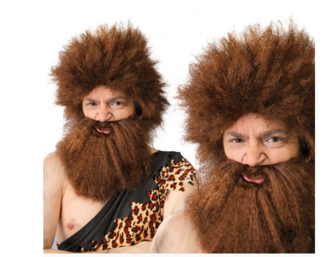 Carnevale , 4870 PARRUCCA CAVERNICOLO CON BARBA CASTANA IN SCATOLA