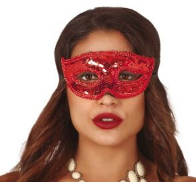 CARNEVALE , MASCHERA PAILLETTES ROSSO RUBINO