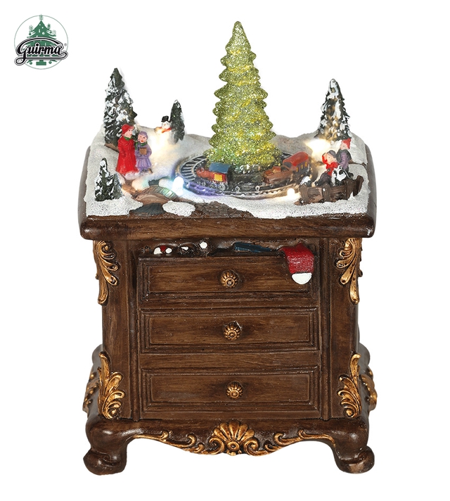 NATALE , CARILLON CON MOVIMENTO ANTICO COMODINO