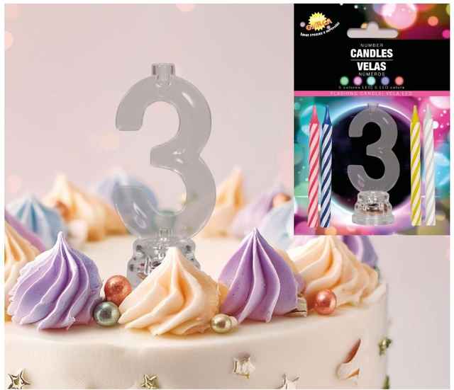 party, 32603 CANDELA LED N°3 CON 4 CANDELE, 13 CM