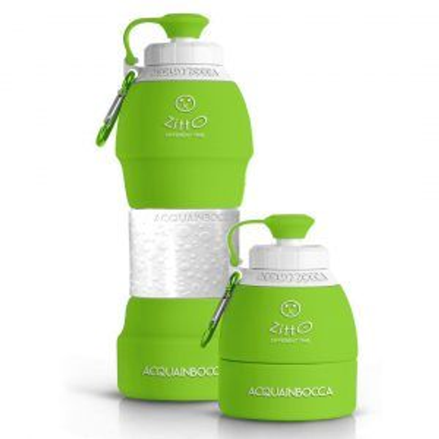 Acquainbocca è l’ecobottiglia salvaspazio che difende l’ambiente, grazie al suo sistema innovativo pop-up puoi decidere anche la dimensione!